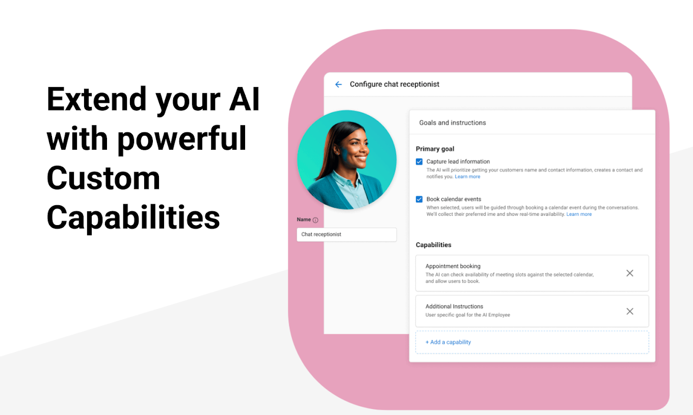 Add more knowledge over time so AI can perform advanced tasks like booking and checking availability.